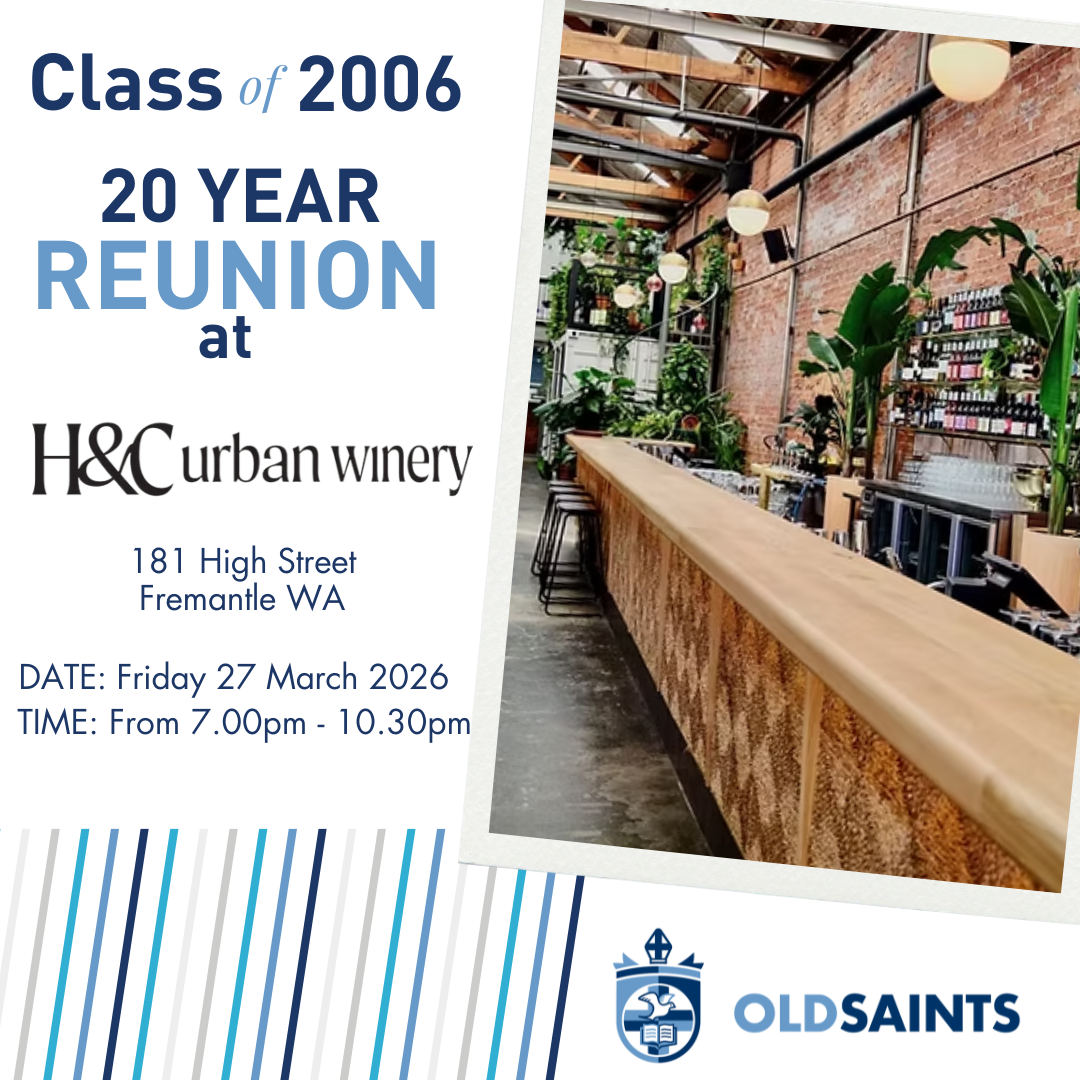 Class of 2006 - your 20 year Reunion will take place on Friday 27 March 2026